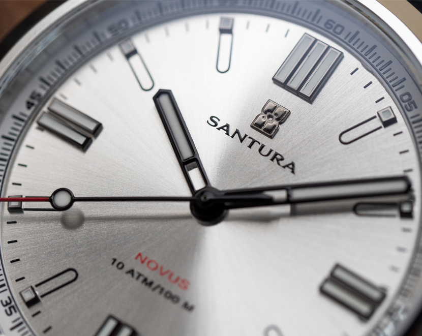 Featuring a semi-open caseback, Santura Novus offers a glimpse into the movement within, blending mechanical artistry with modern design. The case is predominantly brushed, with polished side finishing that adds just the right touch of contrast and elegance.